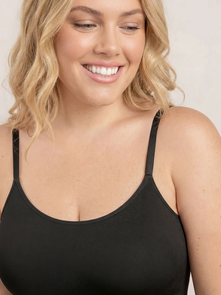 Łatwa do założenia i zdjęcia, pozostaje na miejscu bez marszczenia, niezależnie od tego, czy noszona z biustonoszem, czy bez. Wykonana z lekkiej mieszanki (90% nylon, 10% spandex) zapewnia komfort i świeżość przez cały dzień.